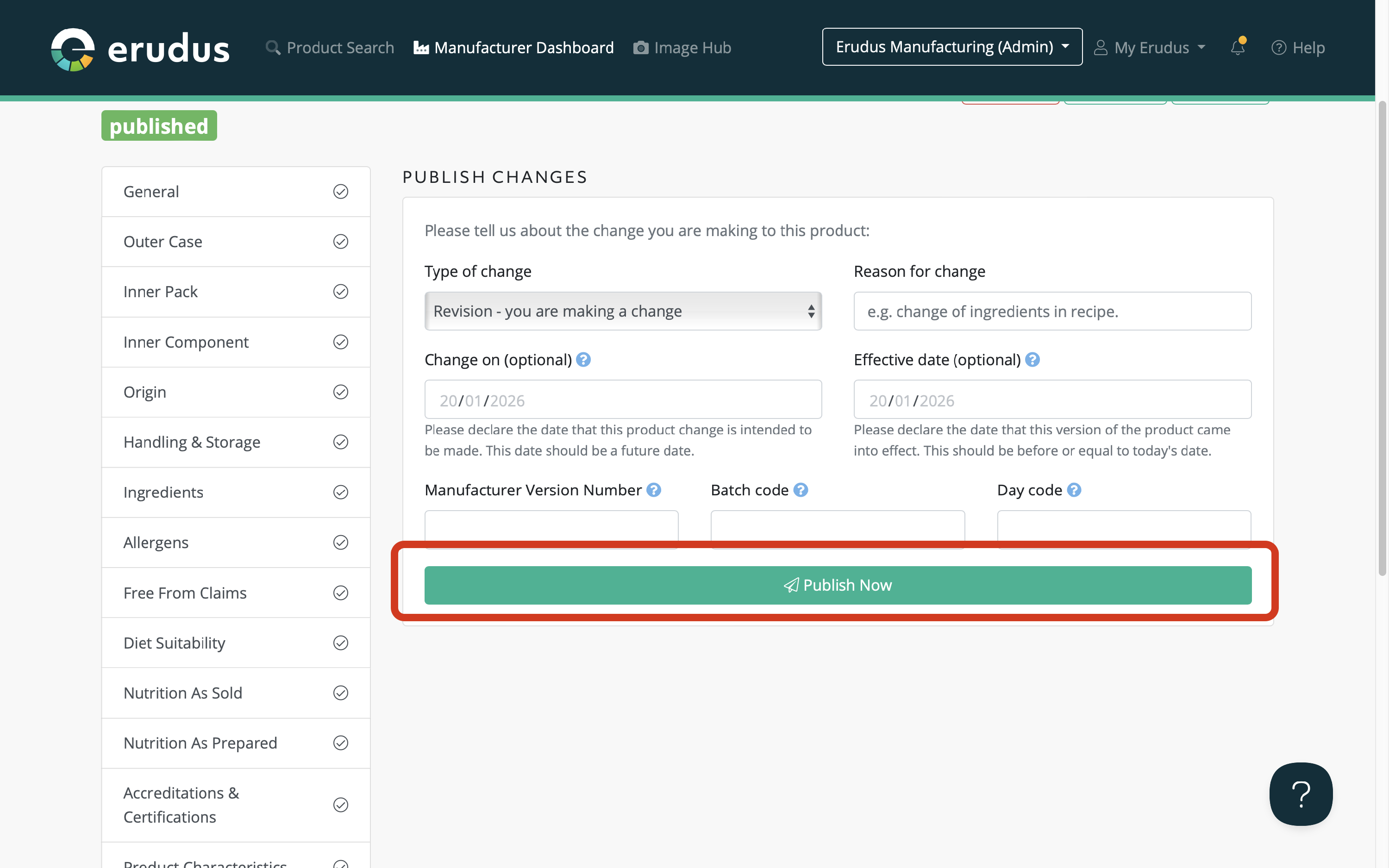 This is a guide to help you identify unpublished product changes within your Erudus Manufacturing account.