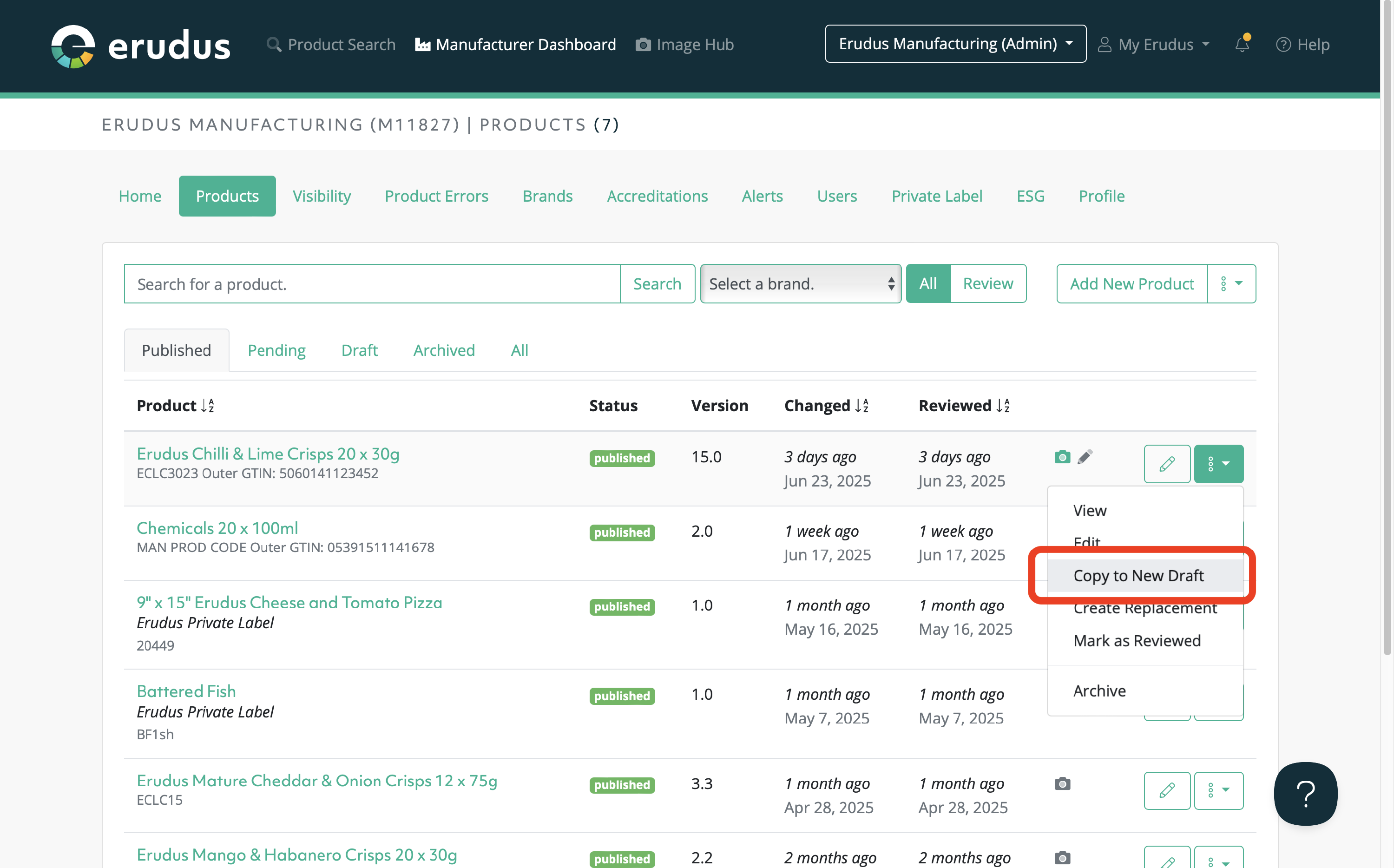 This guide will show you how to copy a product to a draft and discuss some of the reasons that this feature can be beneficial to improving efficiency when using Erudus