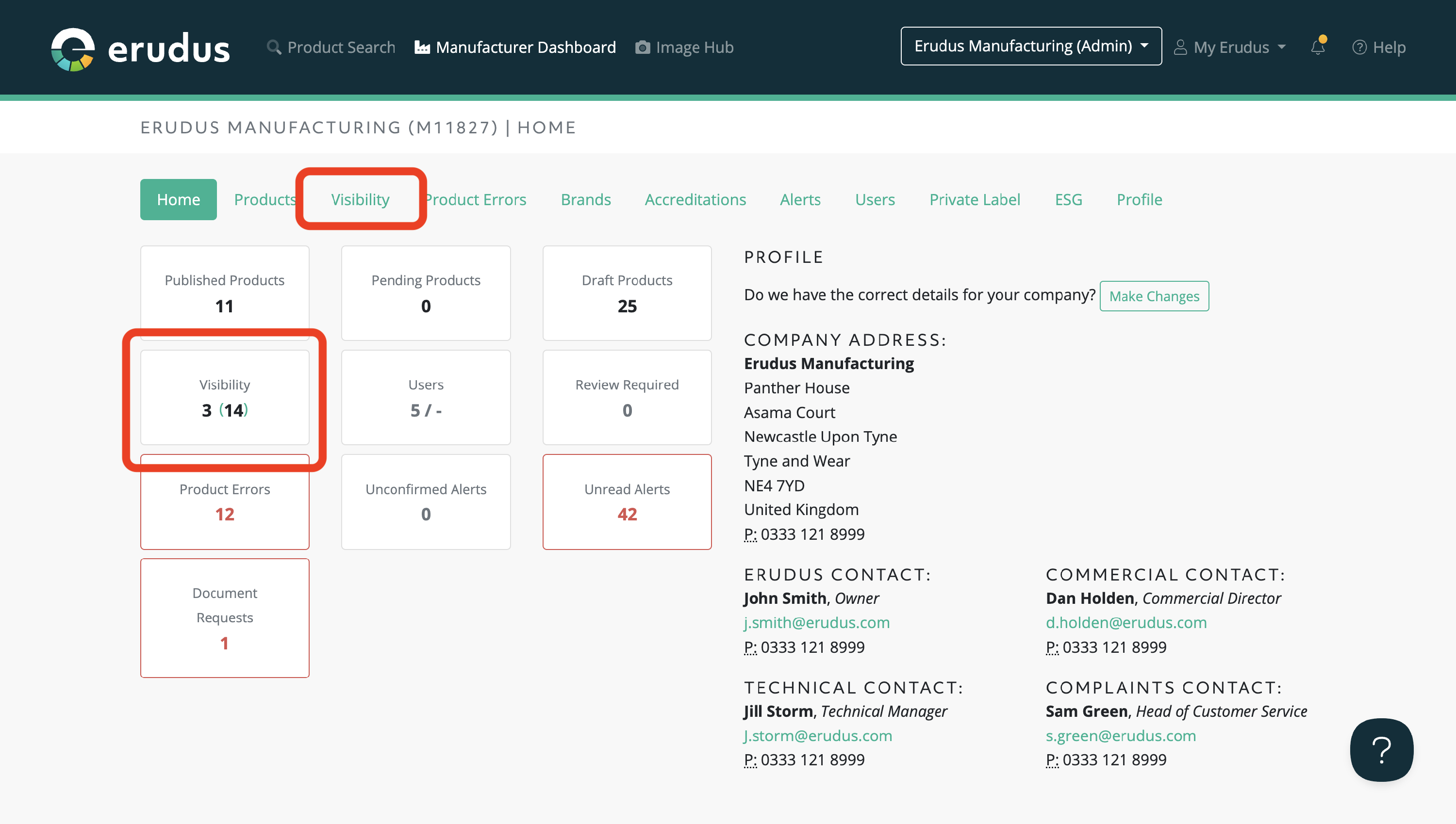 This guide will explain the visibility section within the manufacturing dashboard and how it works within Erudus
