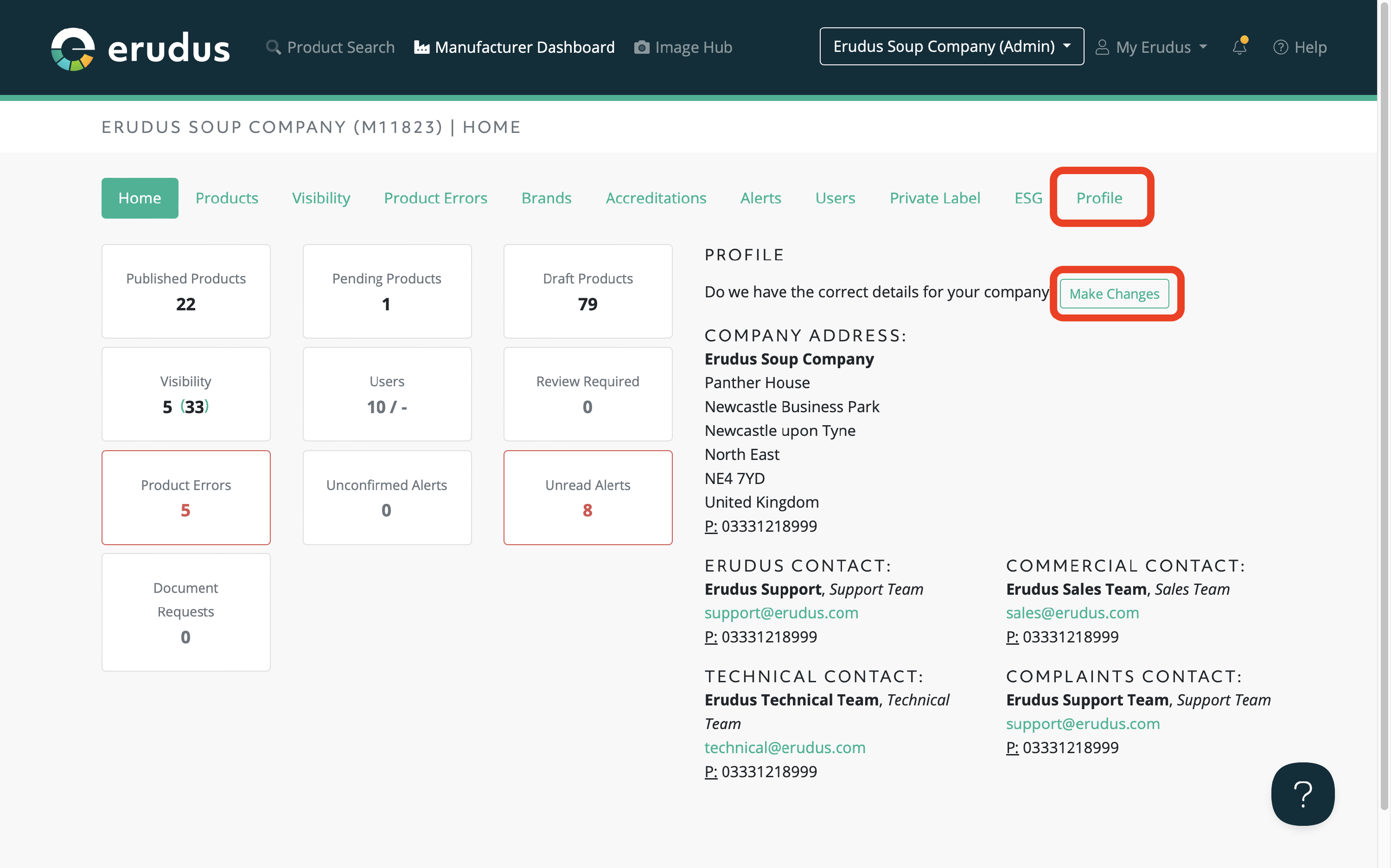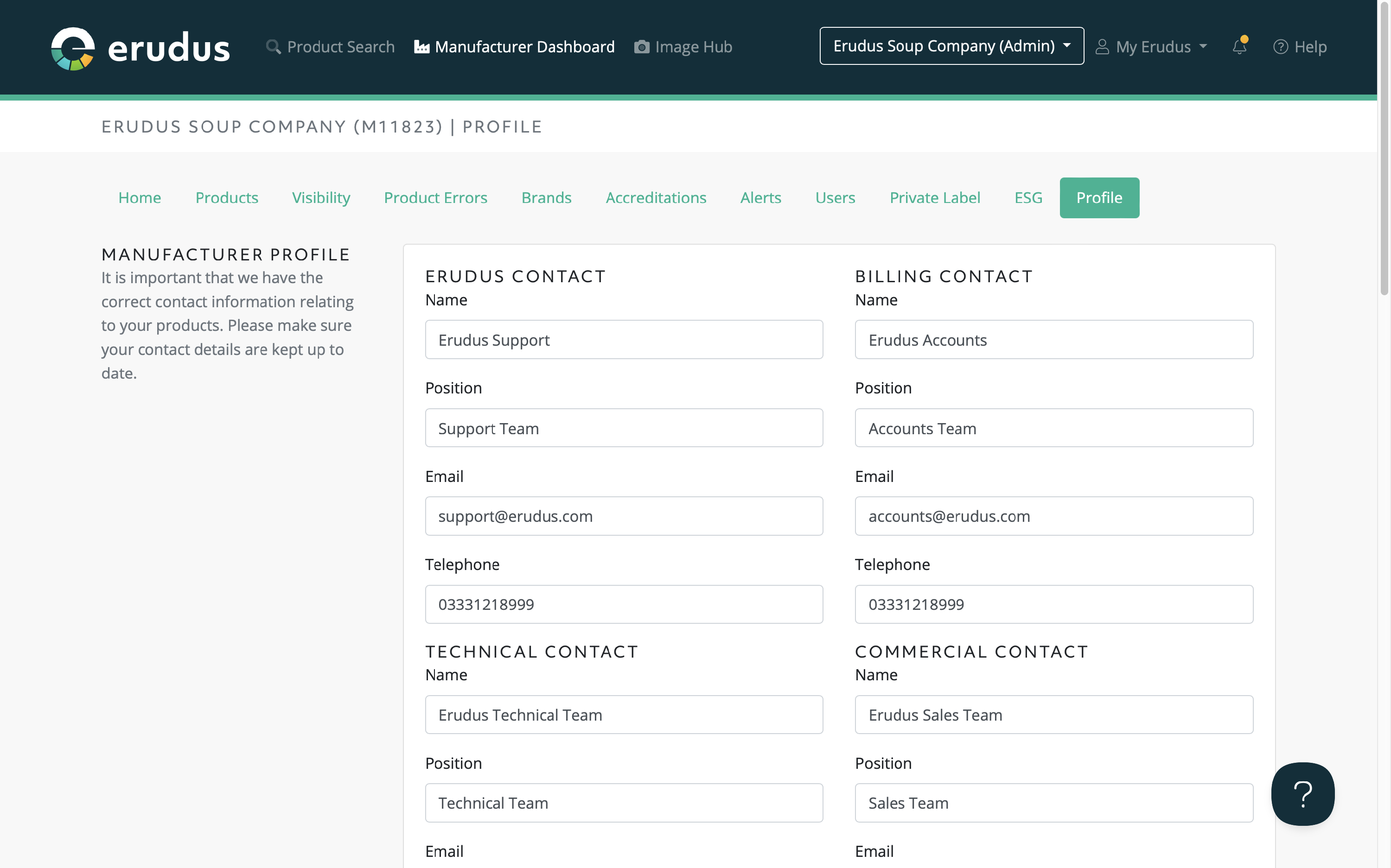 The Erudus team also requests that the details are kept up to date to ensure that the correct point of contact is available should there be any queries that need to be addressed by a member of Erudus and the manufacturer directly.