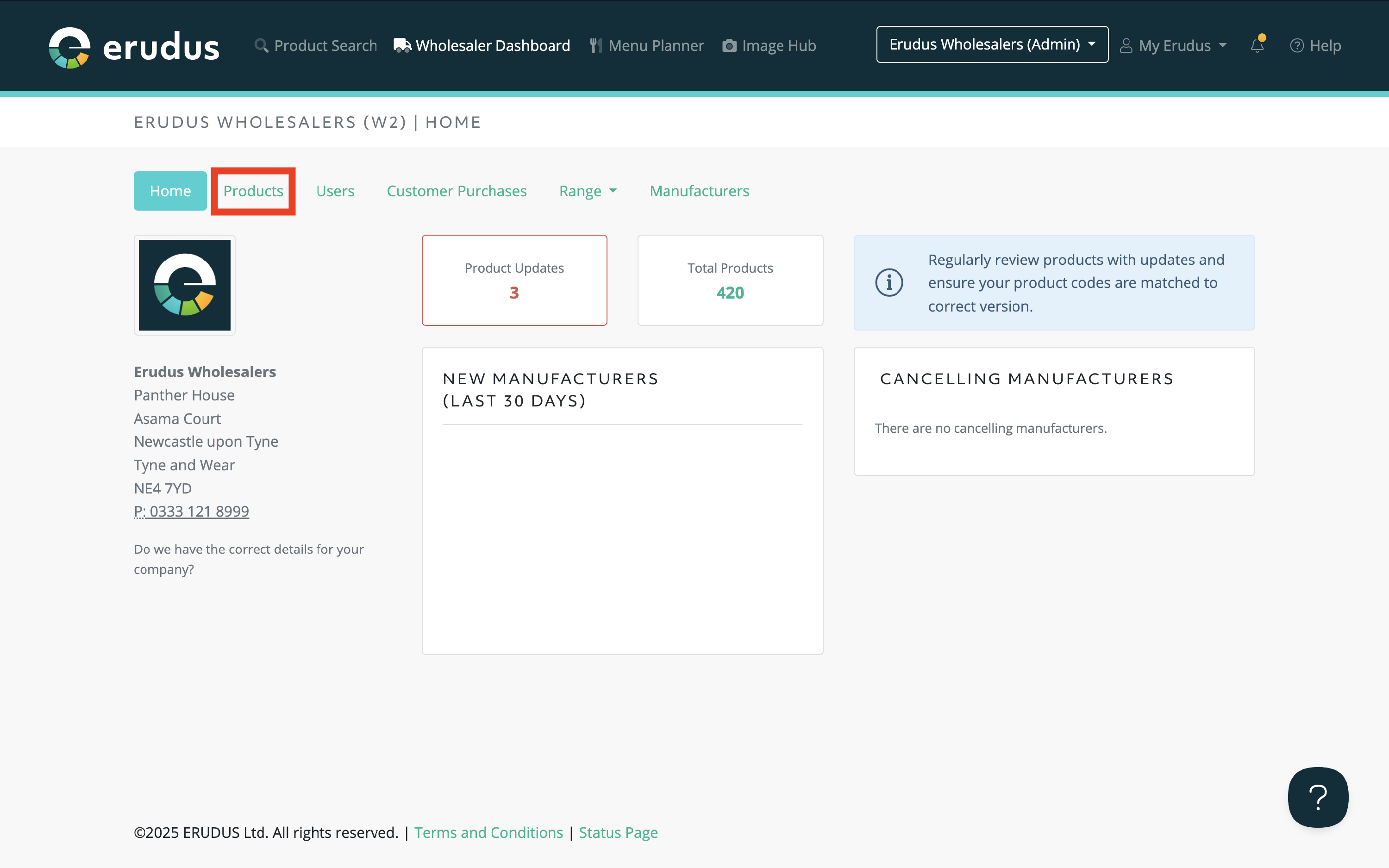 From the Wholesaler Dashboard, click the "Products" button to be taken to the product catalogue for your account