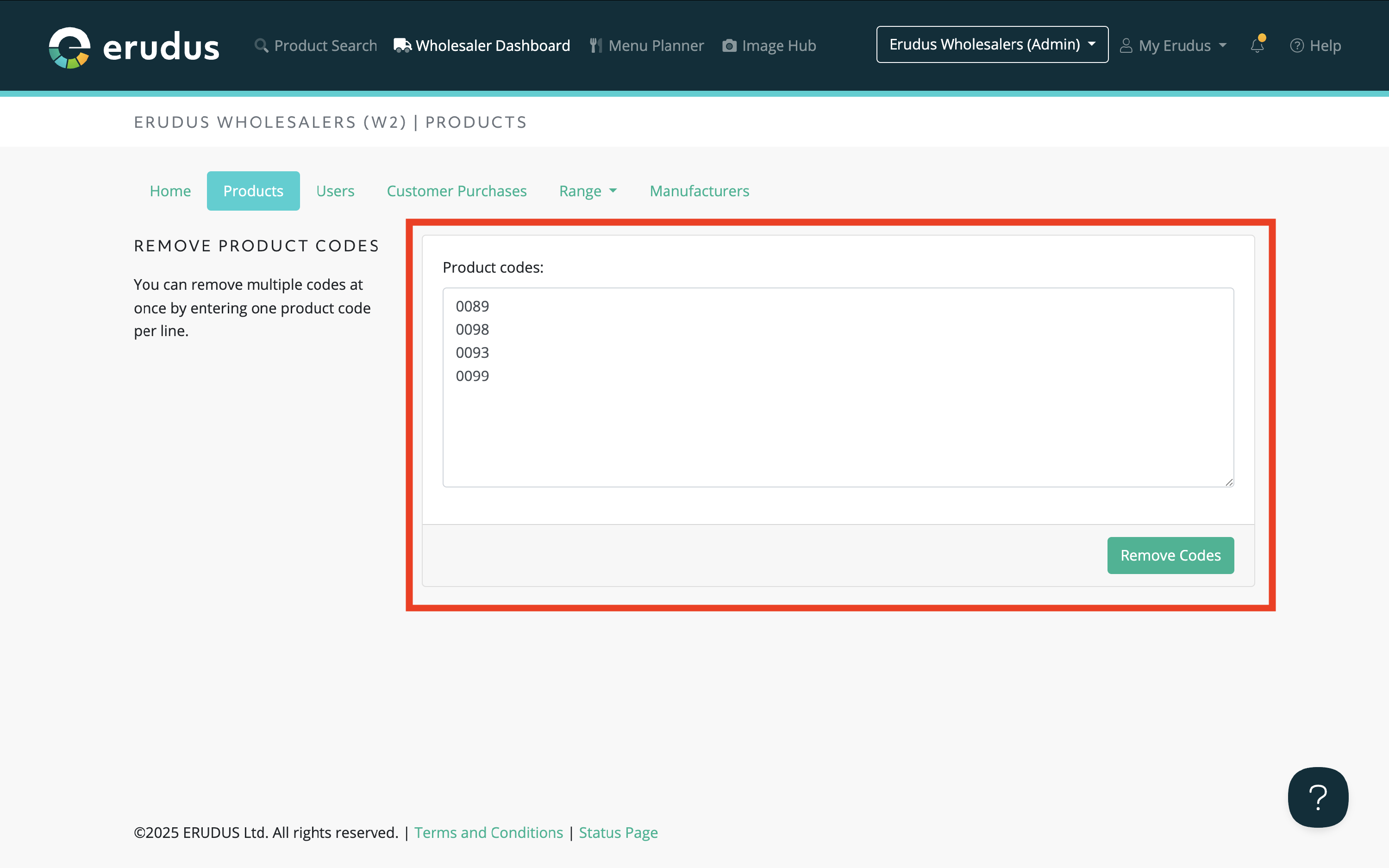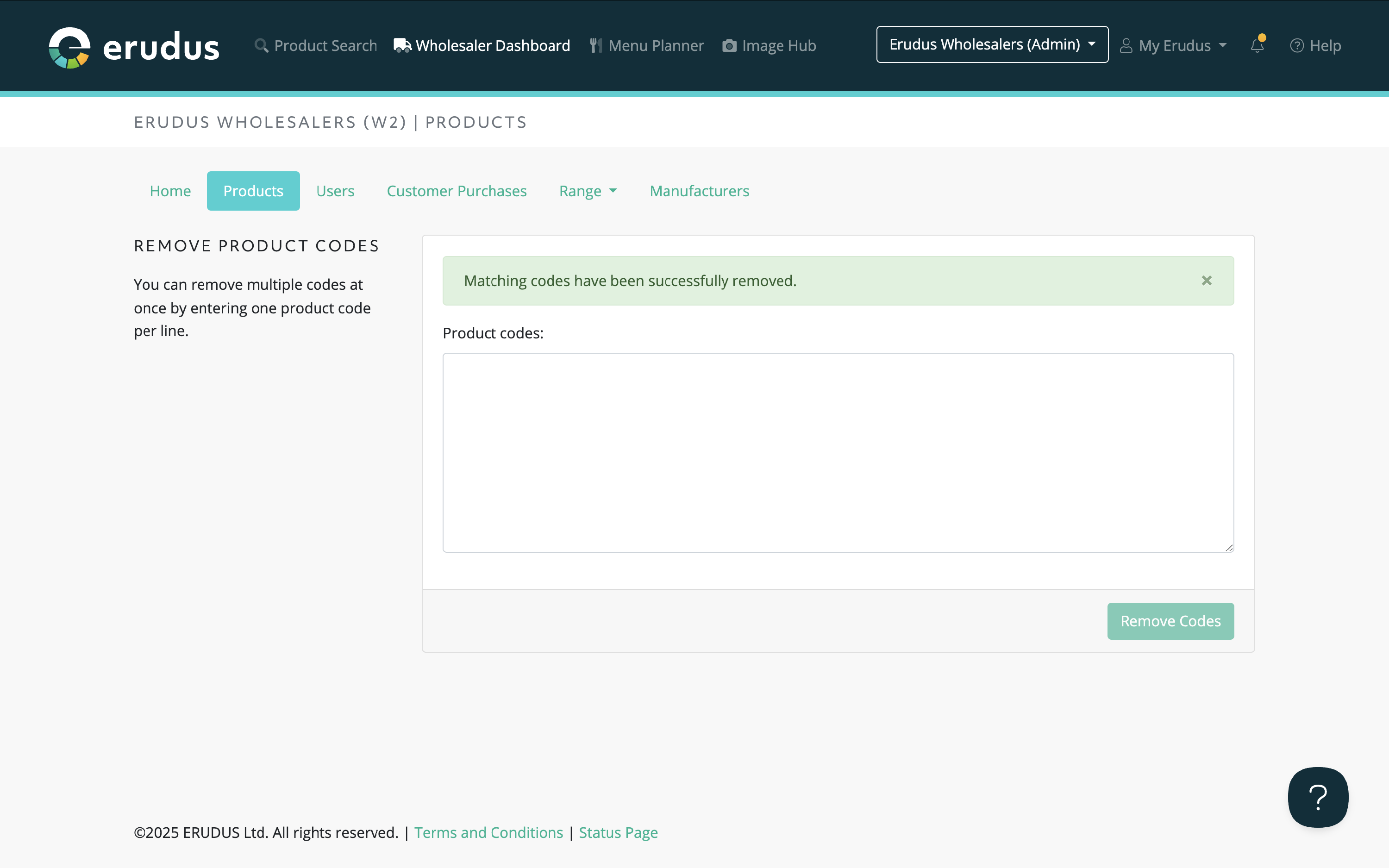 There may be instances where a Wholesaler wants to remove multiple Wholesaler product codes at once after reviewing their range in Erudus. This guide will show you how to remove multiple codes from your catalogue at once.