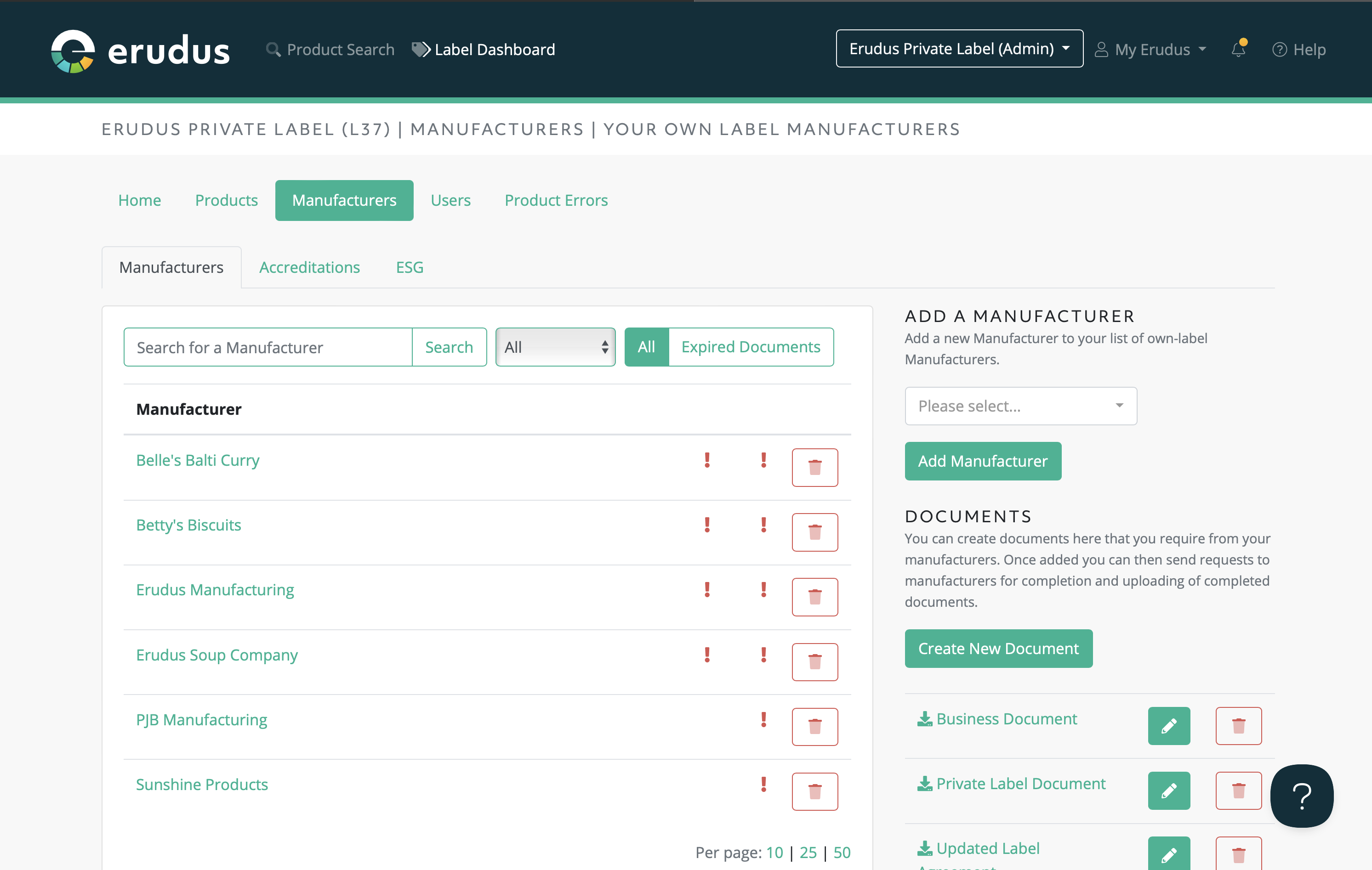 Manufacturer Management for Own Labels