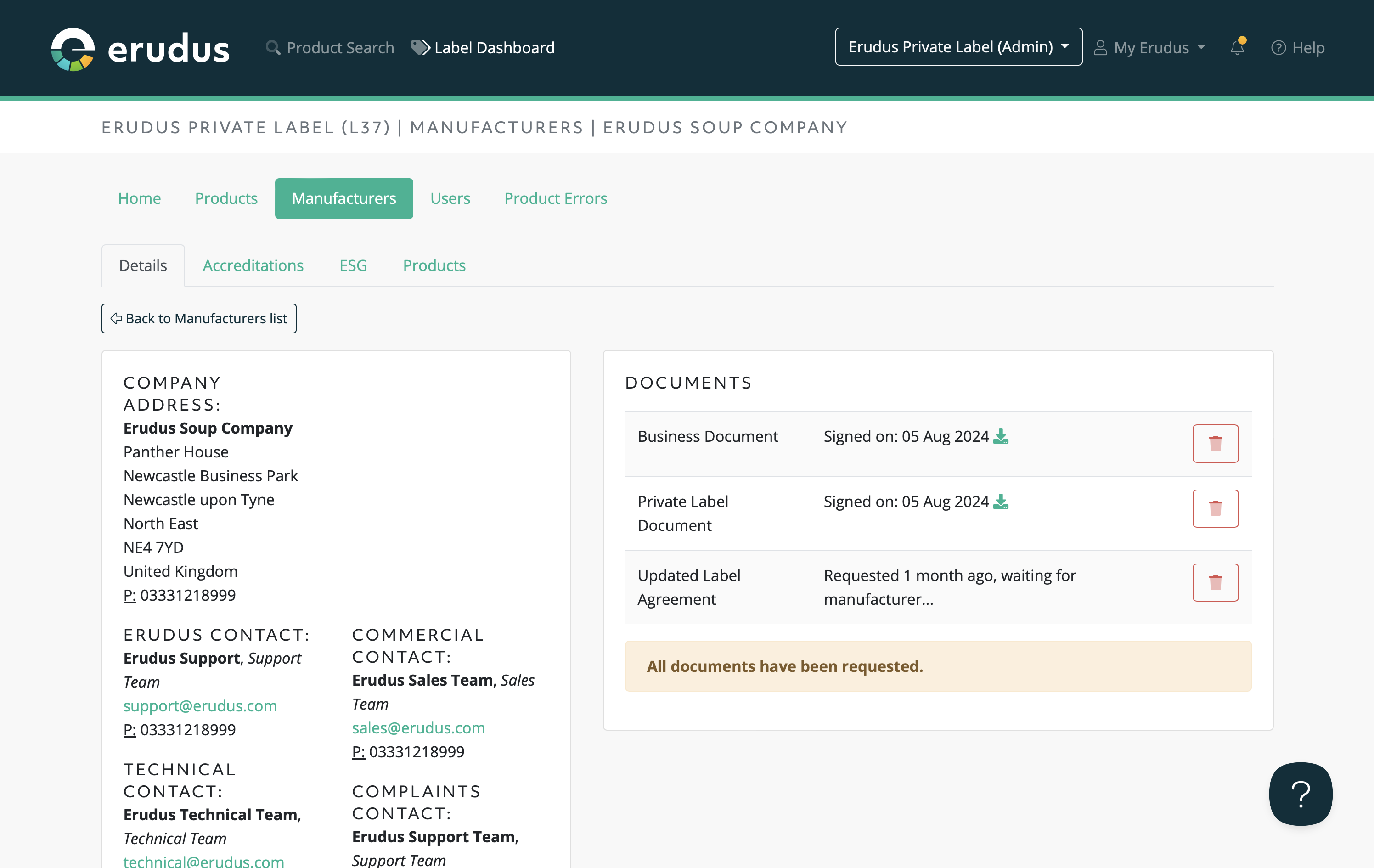 - Documents that you have created and added to Erudus to share with your own label manufacturers