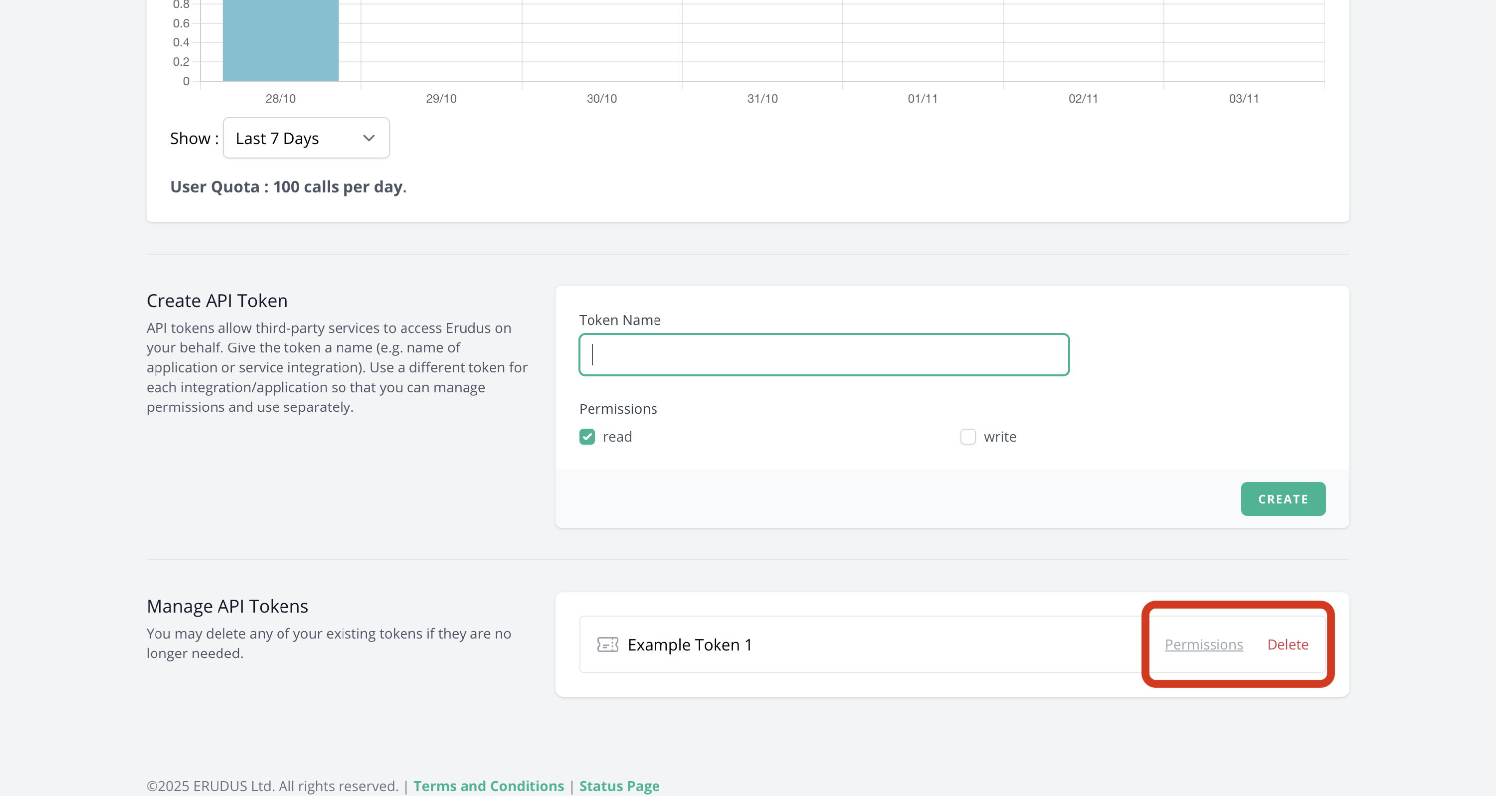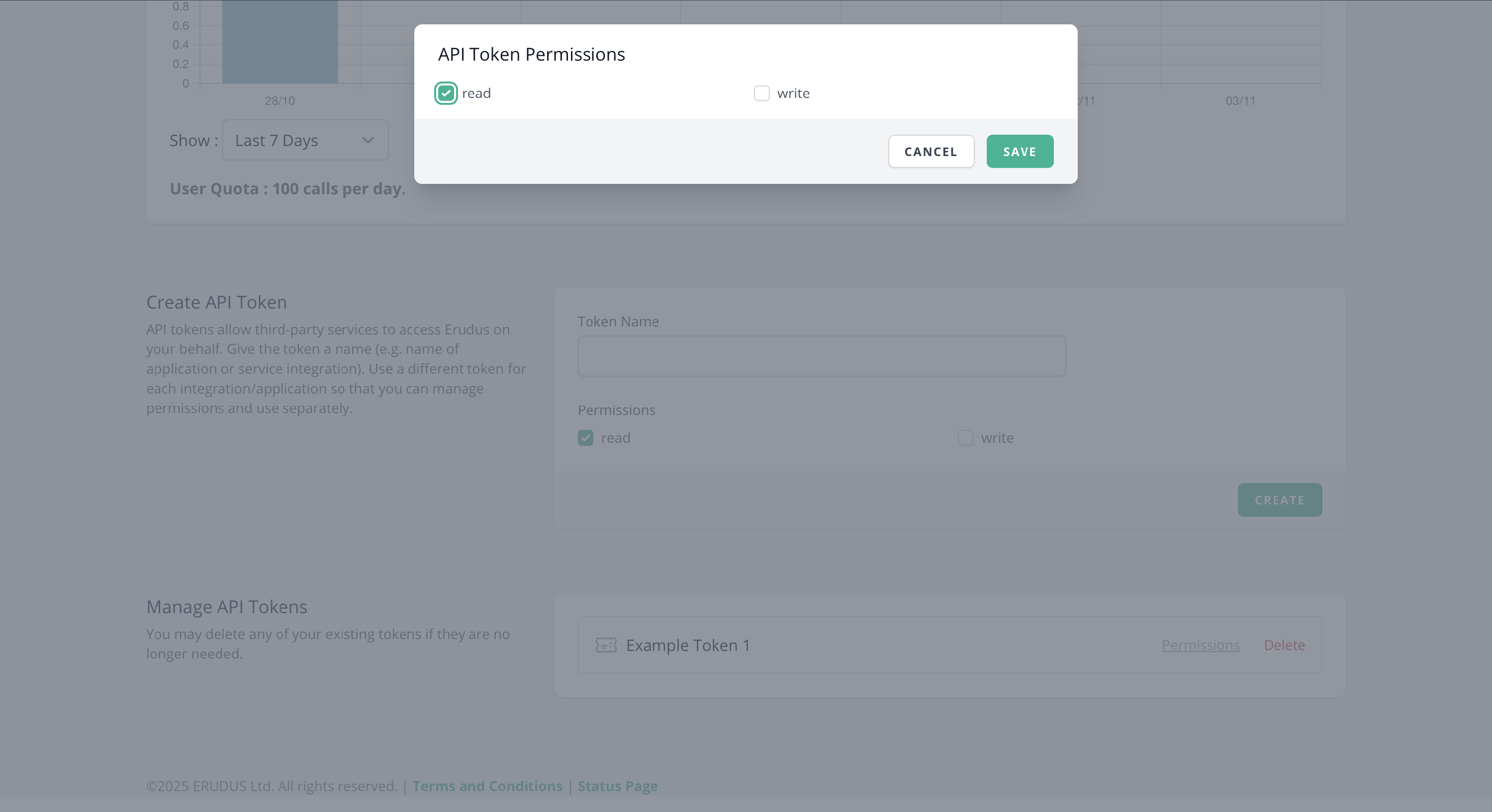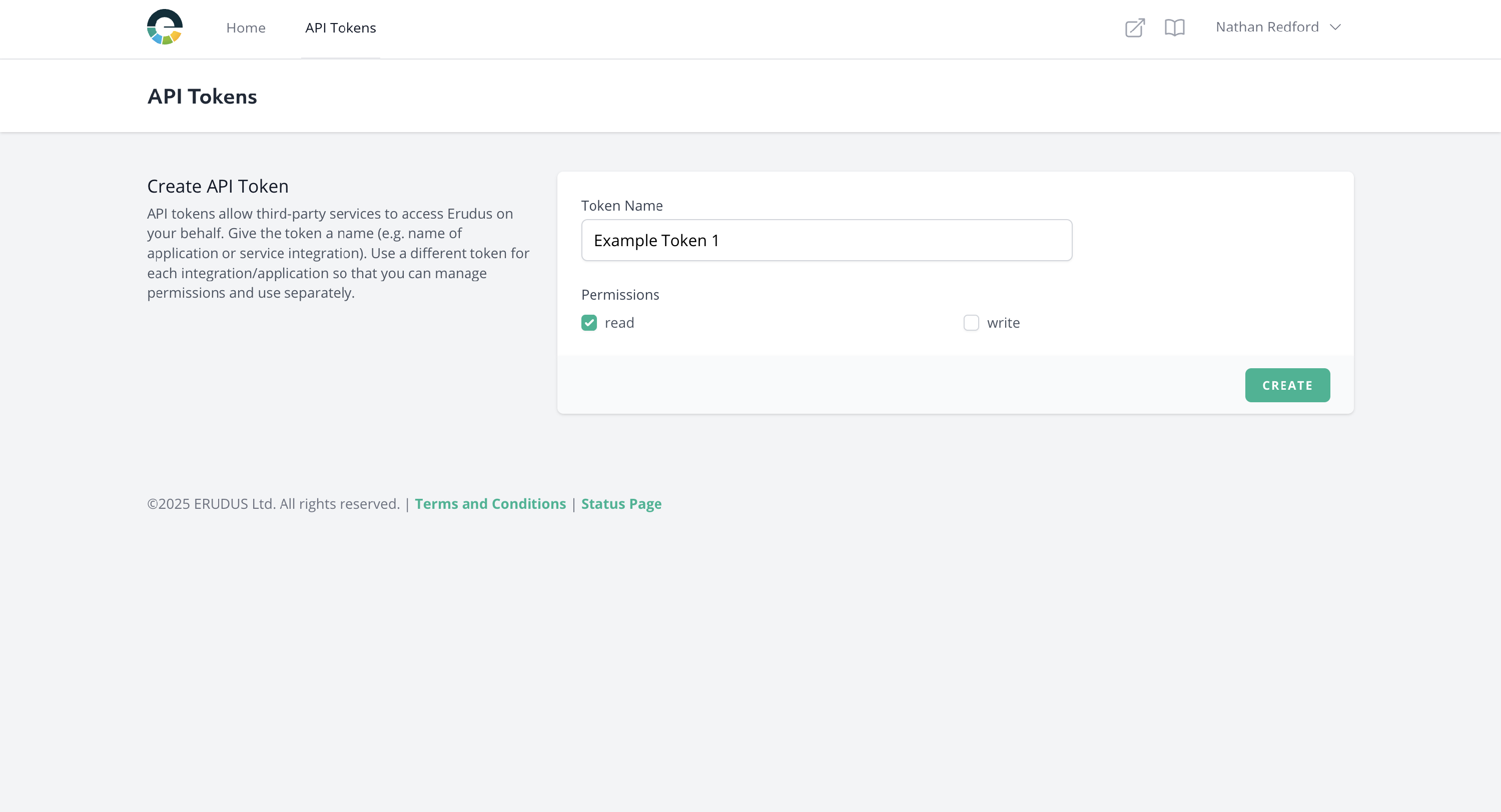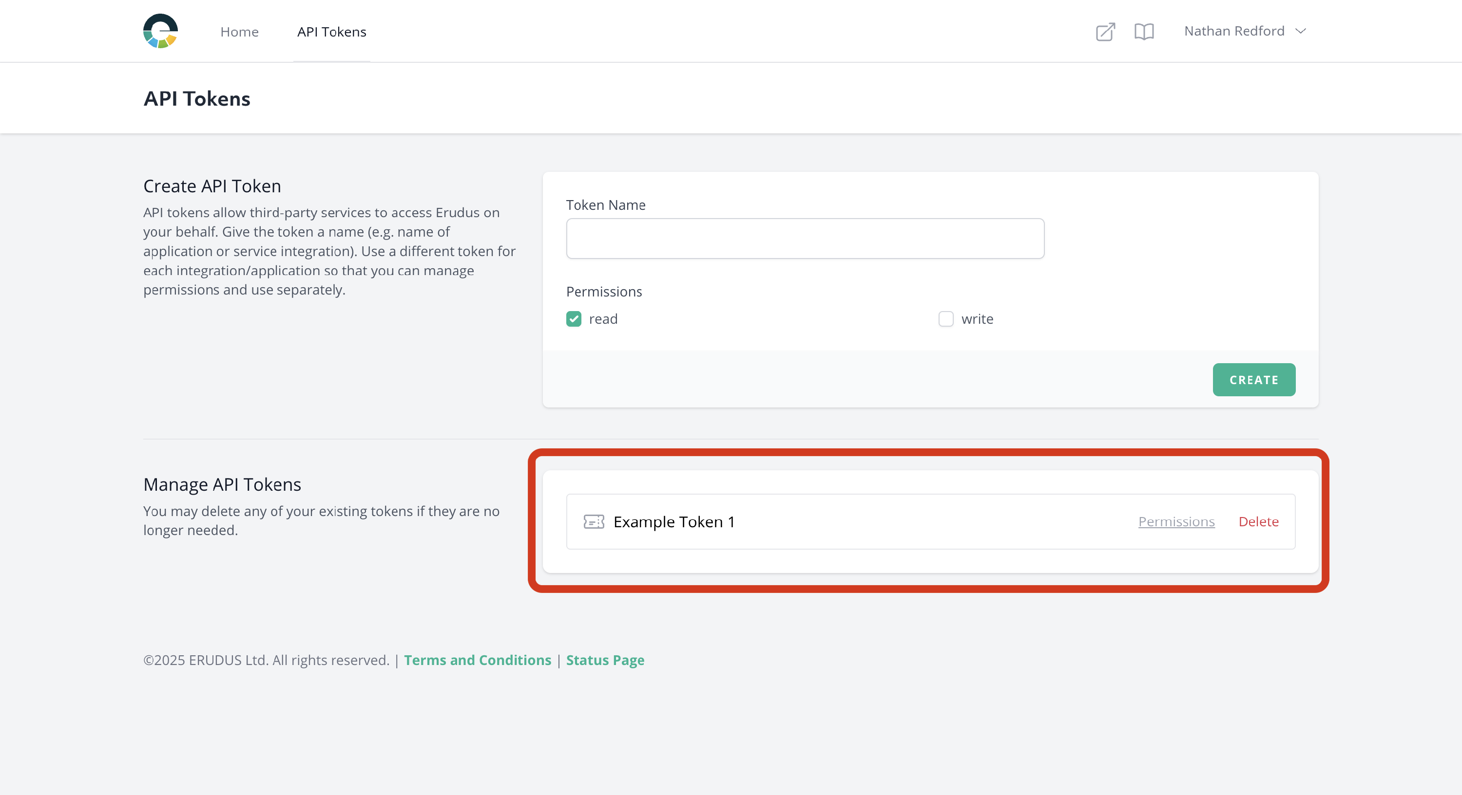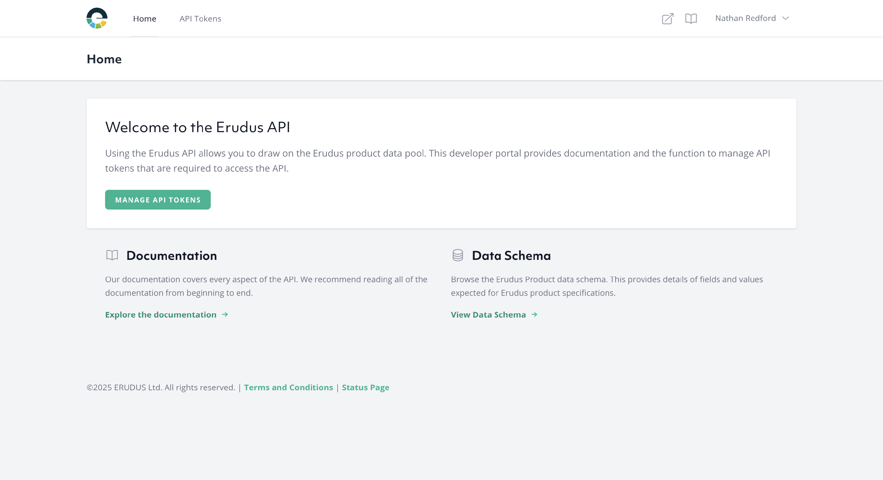 Erudus introduced API V2 in June 2025, and as a result, we have developed a new Erudus API portal. Within this portal, as an Erudus API Admin, you are able to create and manage API Tokens for your Erudus account. Within the portal, you can review each token's usage and amend the permissions of each token.